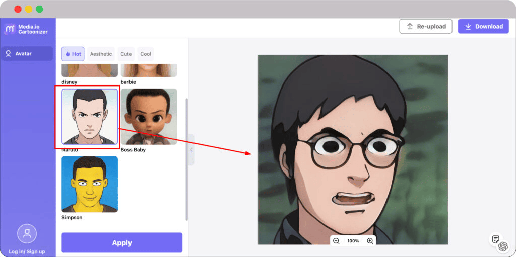 You have to upload an image and select a realistic or cartoonish style to generate an AI avatar in minutes. Also, it lets you customize hairstyles, makeup, and accessories from an extensive library of in-built personalization options.
