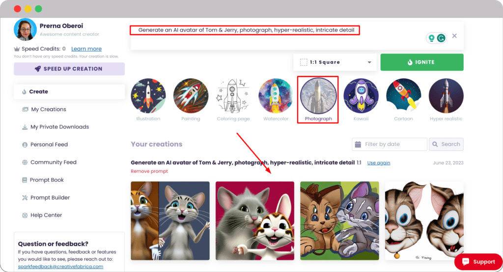 CF Spark Art generates the avatar with a given prompt.