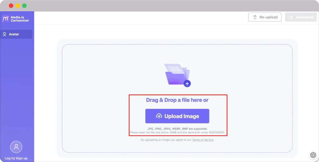 The image below gives a glimpse of the media.io dashboard. You need to upload a picture on the dashboard to get it converted into an avatar.