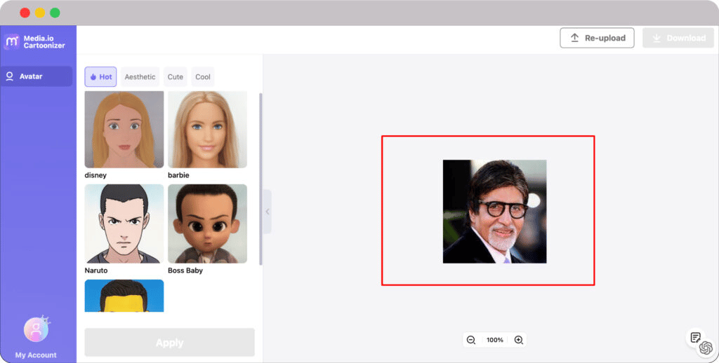 I uploaded an image of Amitabh Bachchan in the image below to get his avatar. From the left sidebar, you can select the style of the avatar.