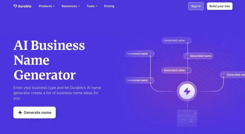 Remember, the ideal business name is unique, memorable, and perfectly reflects your brand. Use Durable to find the name that takes your business to the next level.