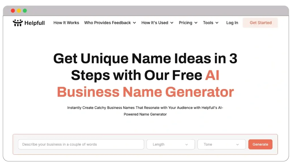 The fourth position on my list of best AI business name generators is Helpfull. If you’re looking for a simple and fast method to create unique names for your business, I highly recommend this platform.