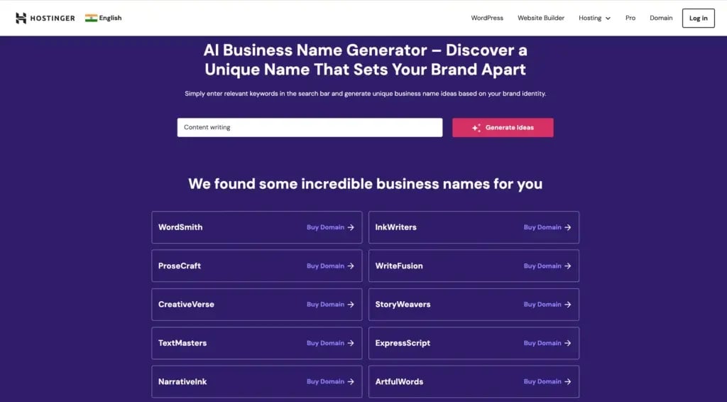 Hostinger utilizes modern AI technology. Therefore, it can generate incredibly catchy and memorable service or product names to match your business’s identity.