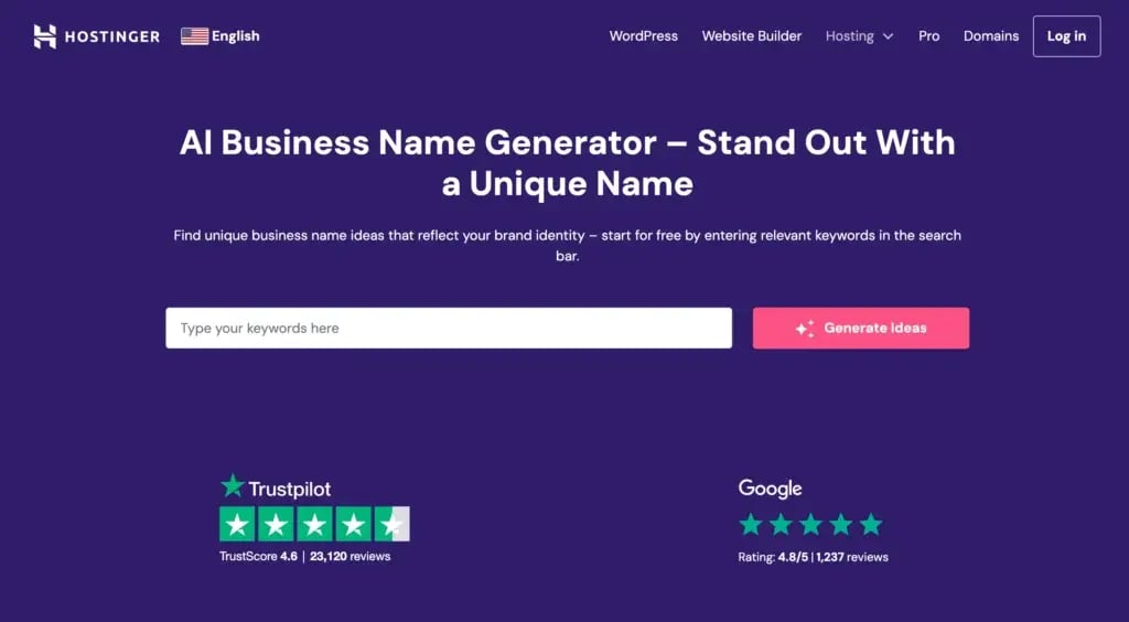 Introducing Hostinger AI business name generator, an excellent option for business owners to create the best brand name ideas.