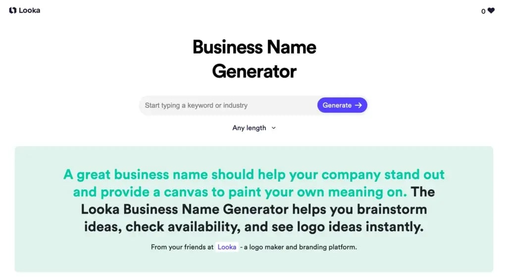 Looka AI business name generator is another eye-catching tool. It can generate high-quality and unique online business name ideas within seconds.