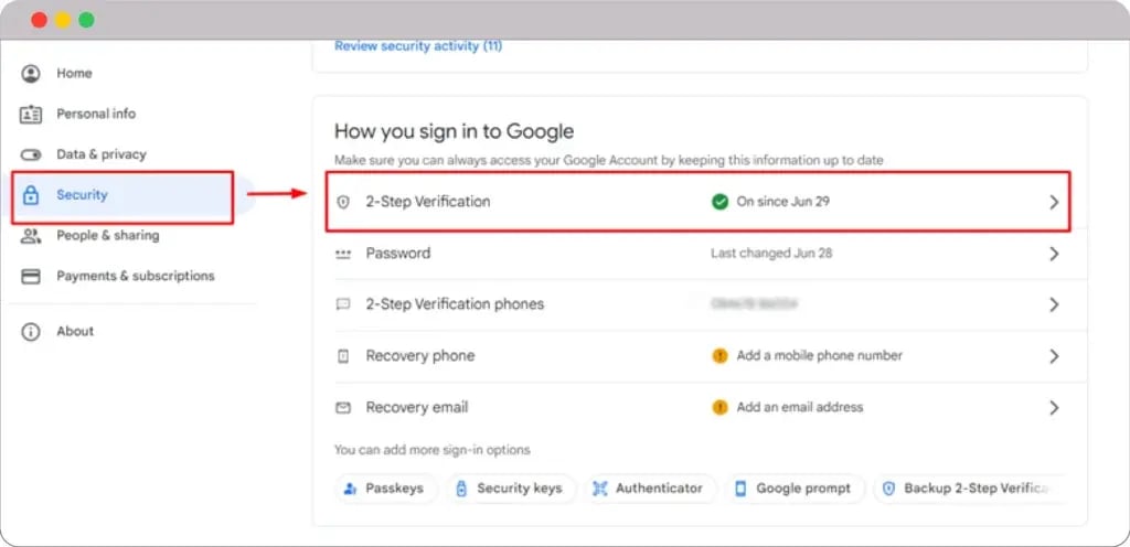 - Now Go to Security and then Two Factor Authentication. (If you haven’t enabled it, you must set up your two-factor authentication first.)