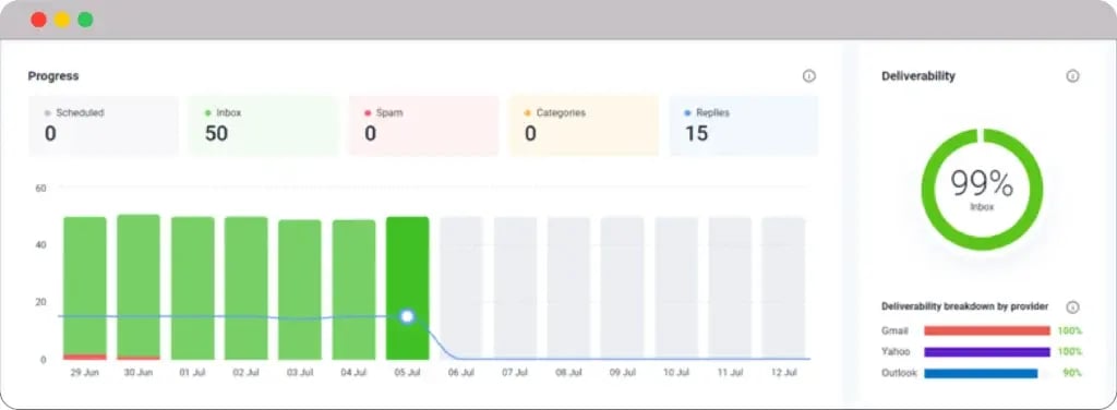 - Monitoring sender reputation and deliverability: With automated warm-up, you can monitor sender reputation and ensure your emails are successfully delivered in your campaigns.