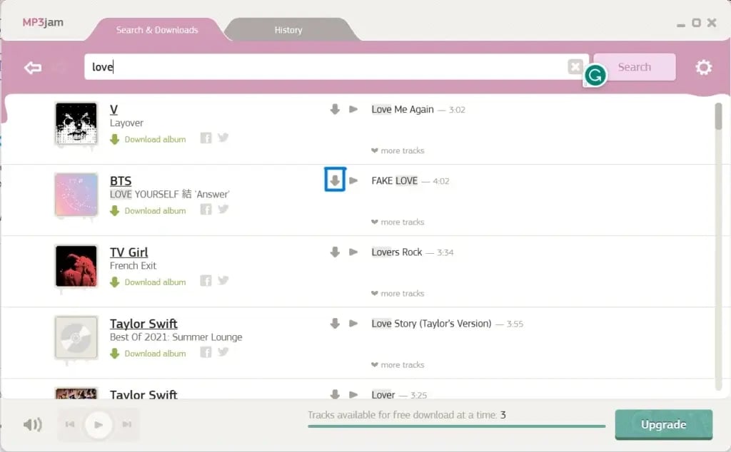 - Offers high-quality MP3 tracks in various speeds, including 128kbps and 320kbps
