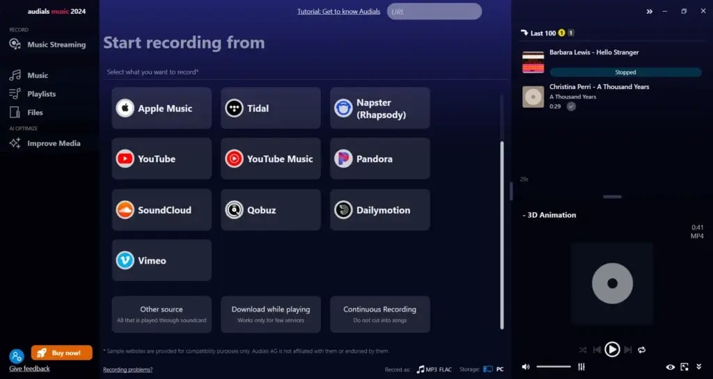 - Audials supports various streaming services, including Amazon Music, Soundcloud, Tidal, Deezer, and Spotify.