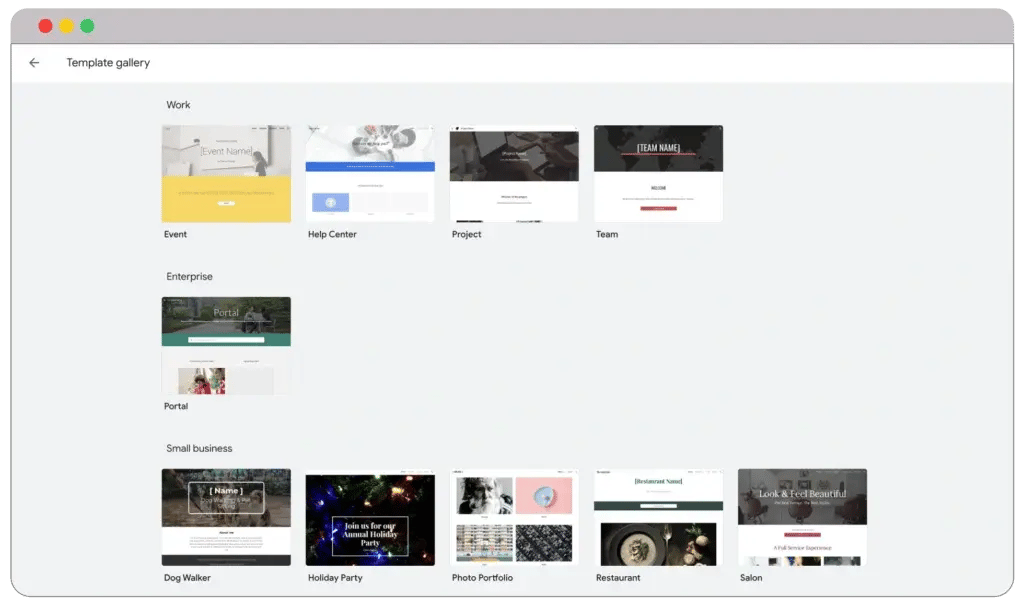 Google Sites offers only 18 templates. Yes, you heard that right. There are only 18 templates to create a fully functional website, which is quite a headache.