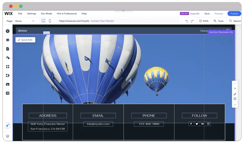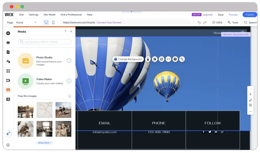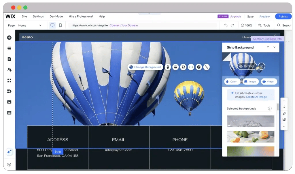 Compared to Google Sites, you can edit images directly from the Wix dashboard. You can change the background color, width, length, and many other things. However, don’t assume that you can make too many customizations.