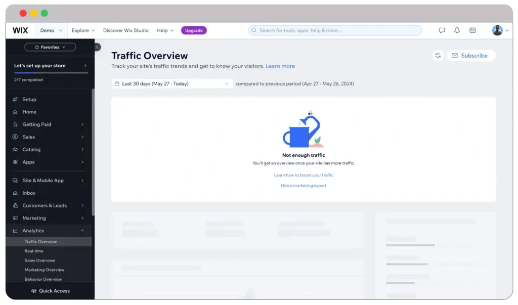 Wix analytics is also good. Unlike Google, Wix allows you know about different types of reporting. For example, you can learn about traffic overview, real-time data, behavior overview, and many more.