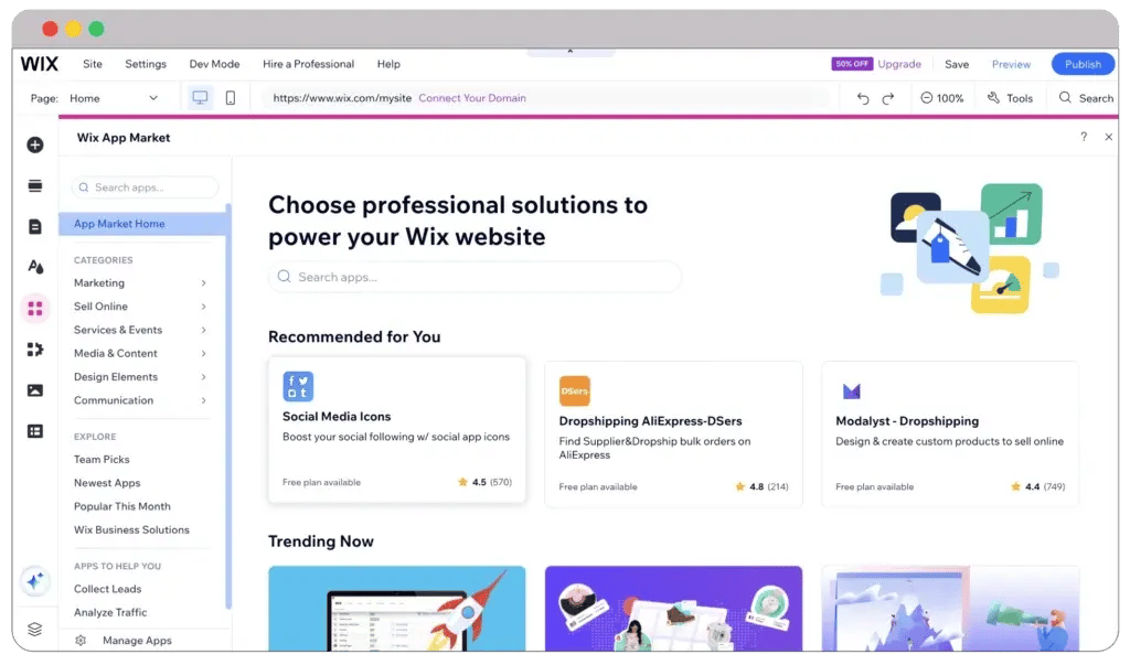 Remember that the free Wix plan will show ads on your website. This is something you won’t face with Google website builder. Moreover, you can also connect your branded domain.