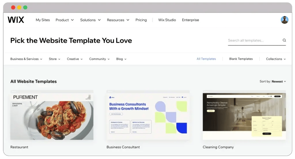 Wix: Extensive template library