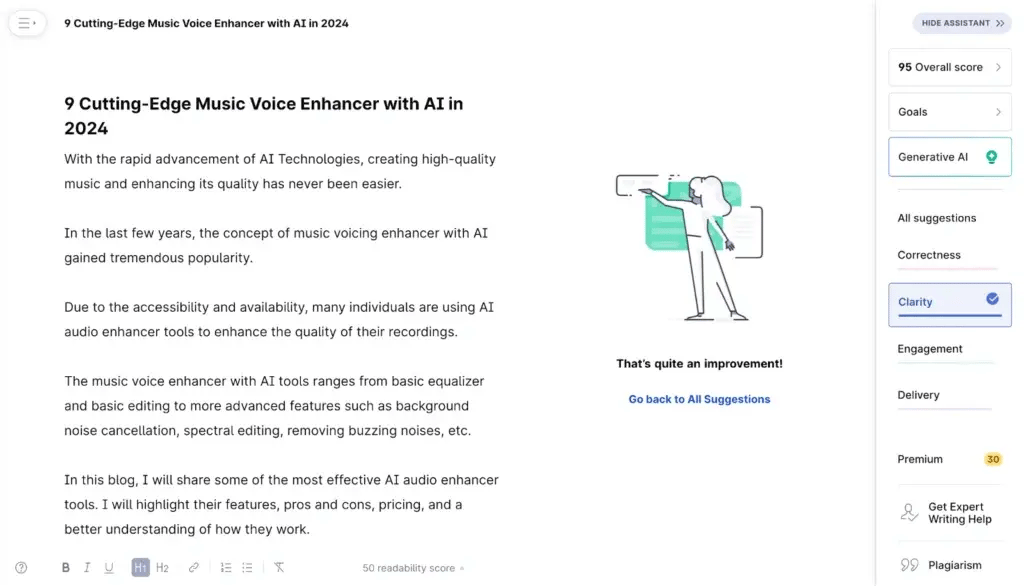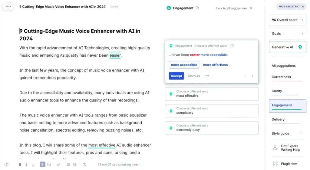 Overall, I found this feature super helpful. As I have been using Grammarly Premium for quite some time, I can highly recommend Grammarly in enhancing content engagement.