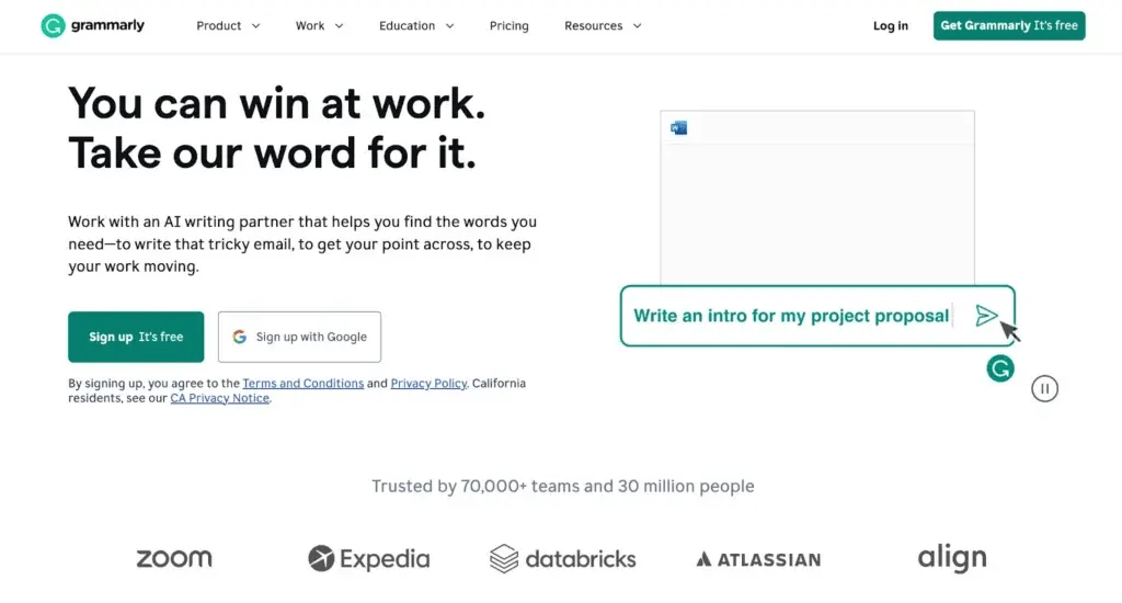One of the best things about Grammarly is that it provides a free plan for its users. Sign up and start using Grammarly without any financial commitment.