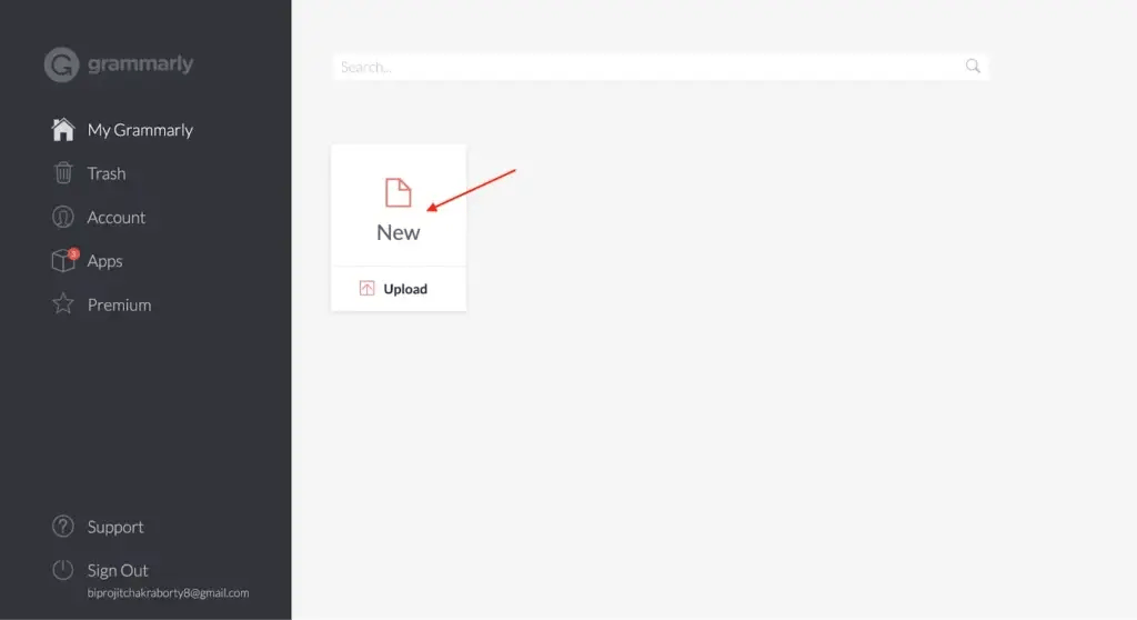 The primary Grammarly dashboard will open when you click on this “New” option. If you need to change anything, you can access the Settings from the left panel of the screen.