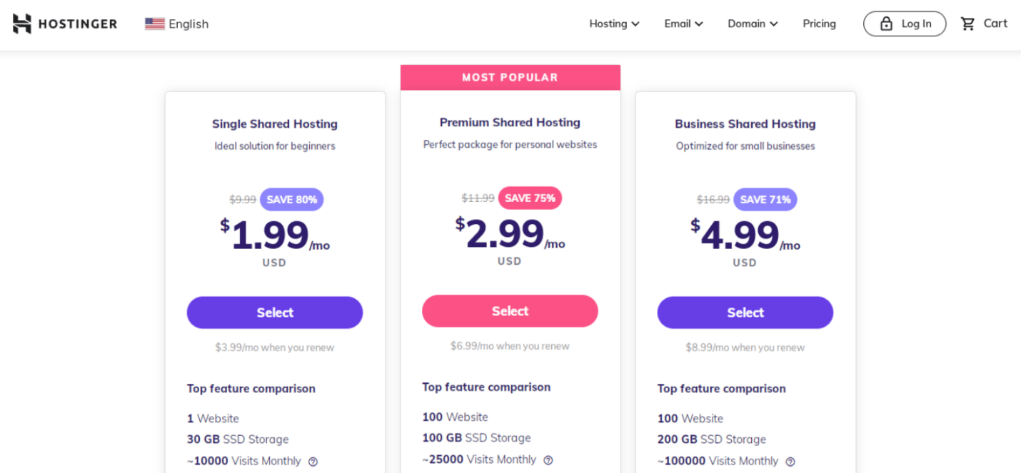 A WordPress hosting plan can be purchased for $1.99 to $699.30 per month initially. However, their renewal prices can vary between $3.99 to $999 per month.
