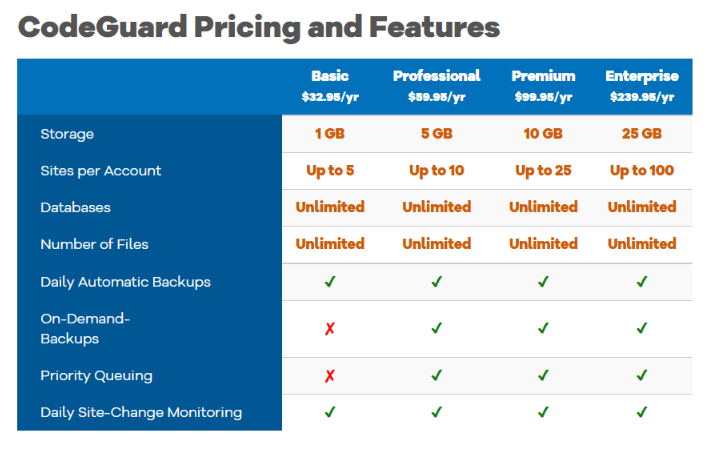 The cost of CodeGuard plans ranges between $32.95 to $239.95 per year. HostGator shares the cost of different CodeGuard plans here: