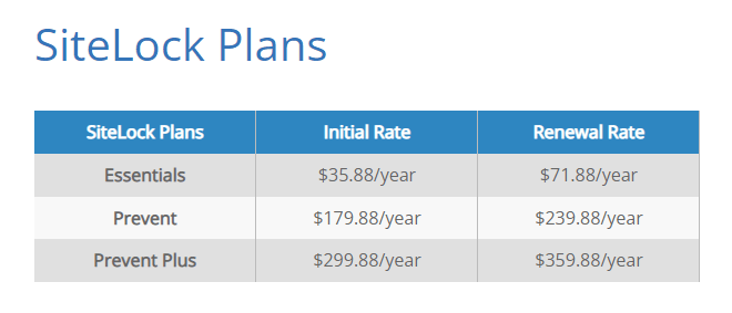 This upsell usually costs about $35.88 to $299.88 per year initially. The renewal cost can lie between $71.88 to $359.88 annually. Bluehost explains the pricing of different SiteLock plans here: