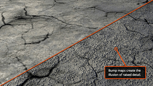 A bump map or height map is another greyscale map that helps you in creating the illusion of depth without actually affecting the geometry.