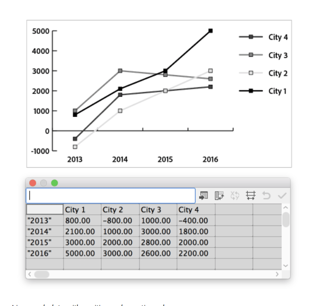 The bar’s length corresponds to the amount compared. Numbers in stacked bar graphs must be all positive or all negative.
