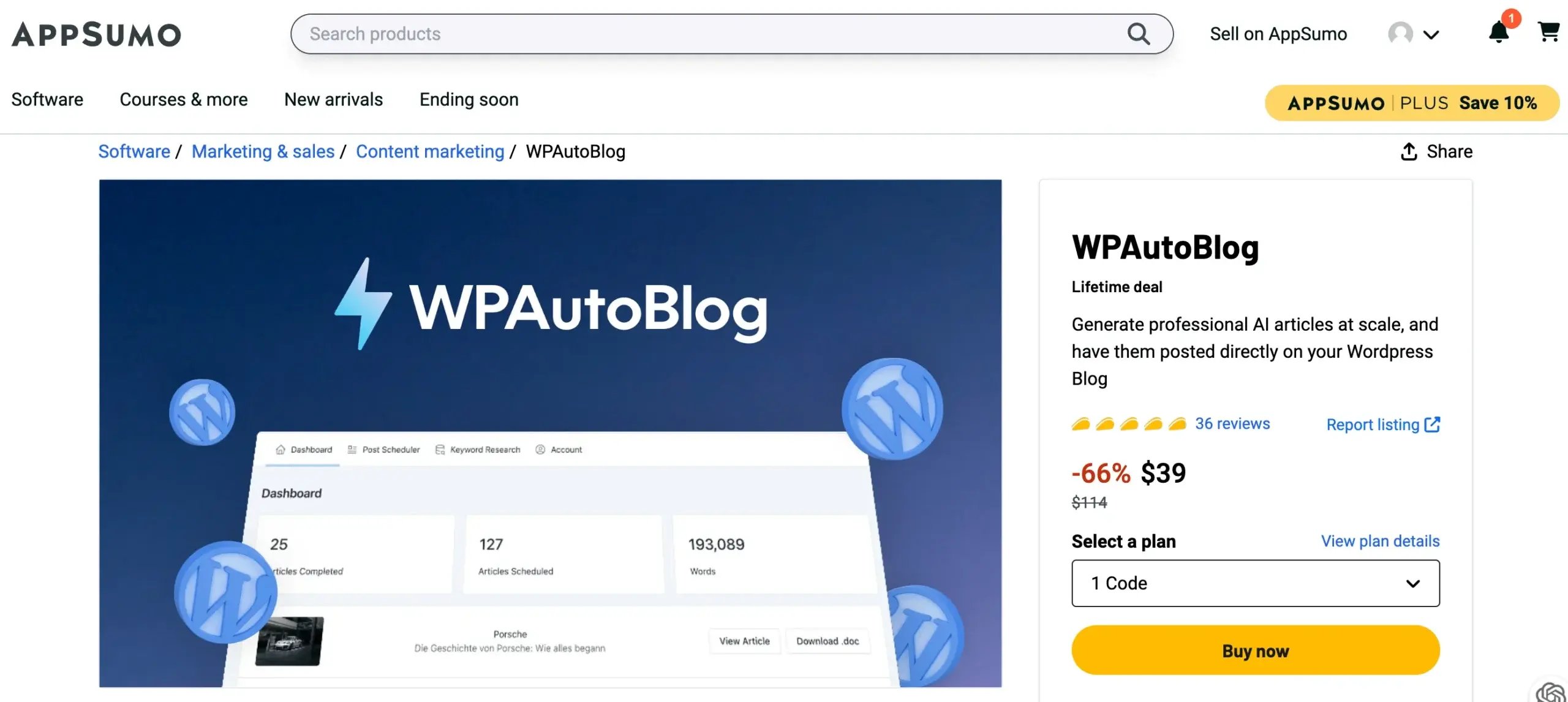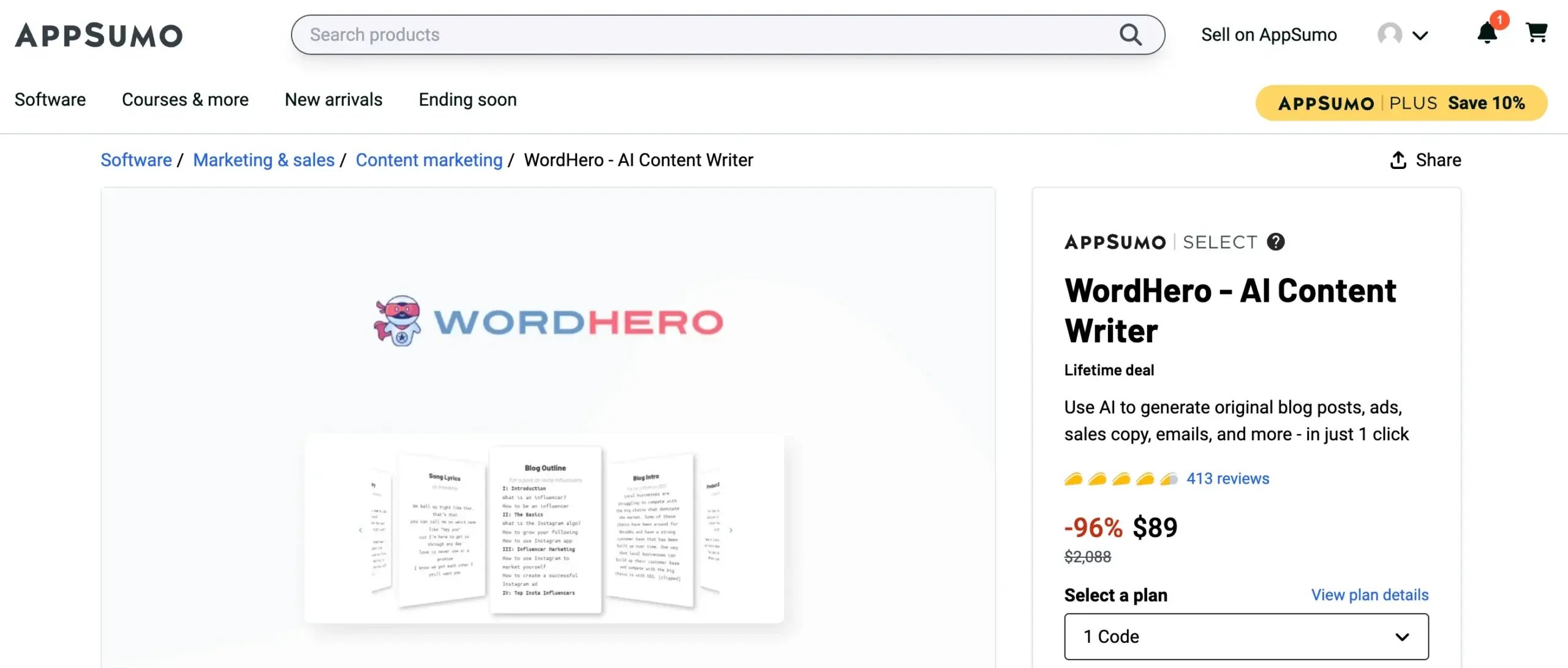 WordHero’s exclusive lifetime deal costs $89, with an opportunity to generate 20k words per month. This generous limit is ample for crafting short-form content, catering to various content needs efficiently.