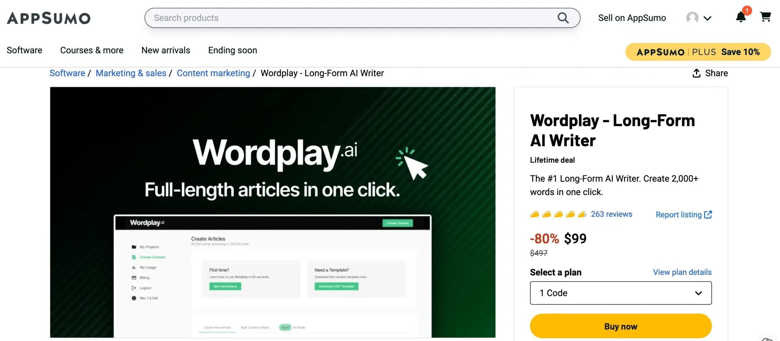 The lifetime deal for Wordplay, priced at $99, offers an 80% discount. It provides access to its full suite of features, including the Long-form AI Writer, making it a valuable investment for efficient and SEO-centric content creation.