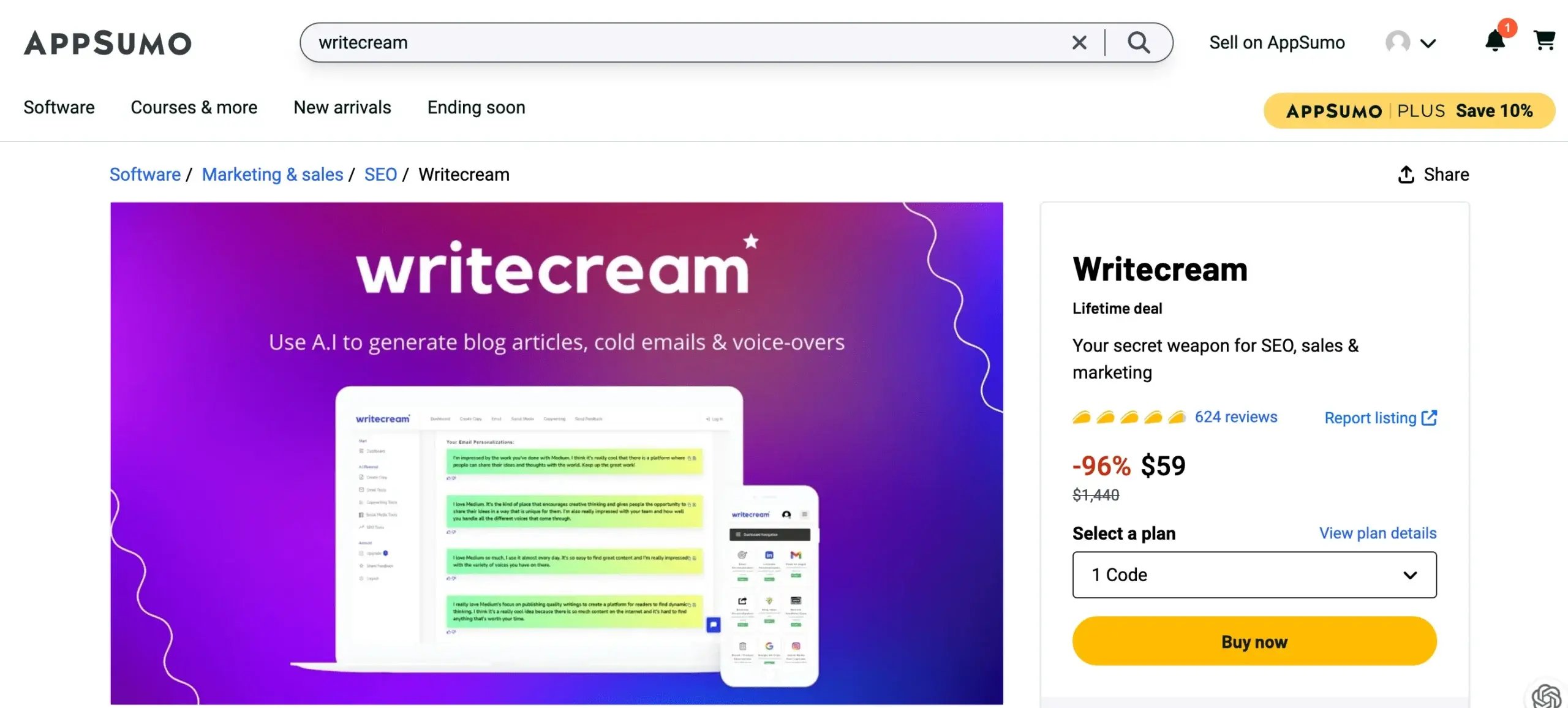 1. Writecream Lifetime Deal
