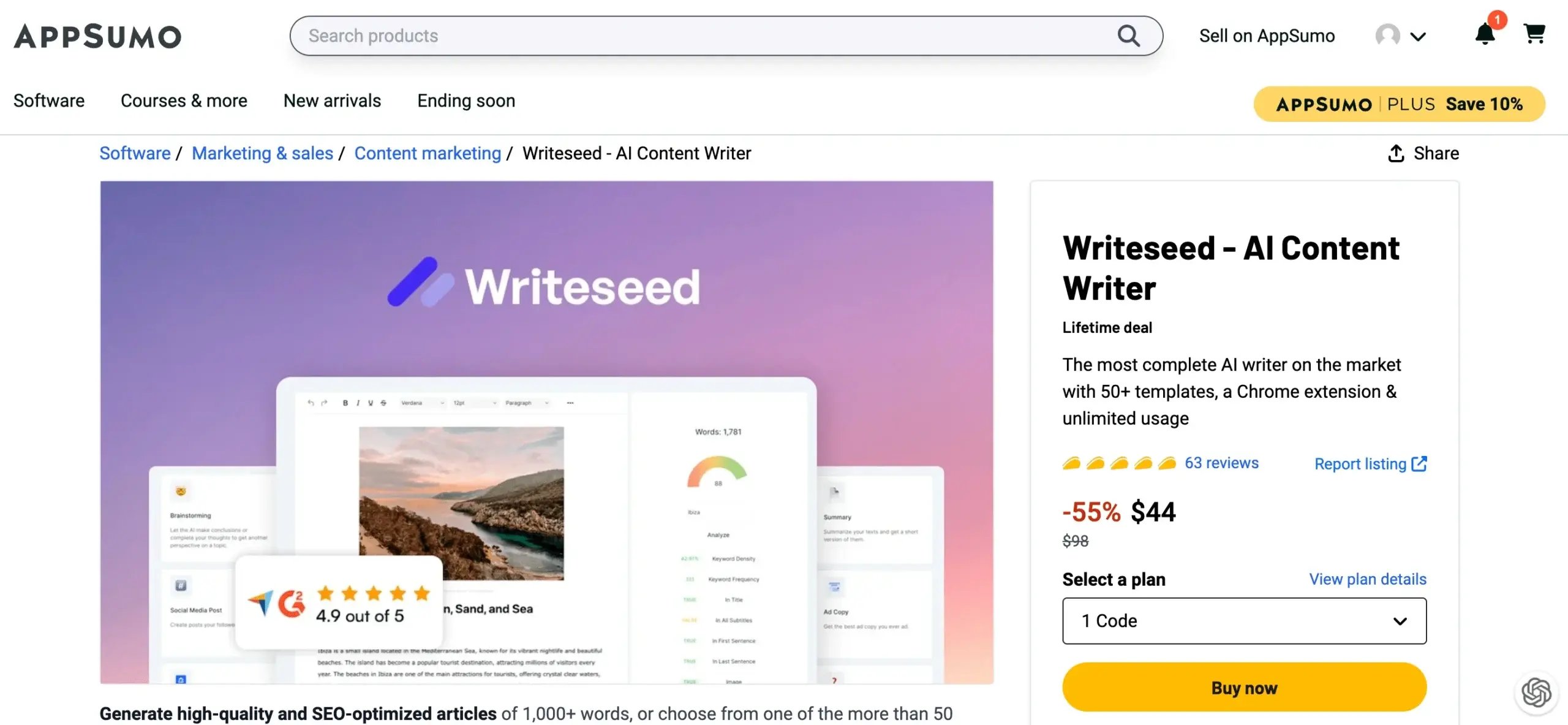 You can get a lifetime deal of Writeseed for just $44, which is definitely a cost-effective solution for those who write content regularly.