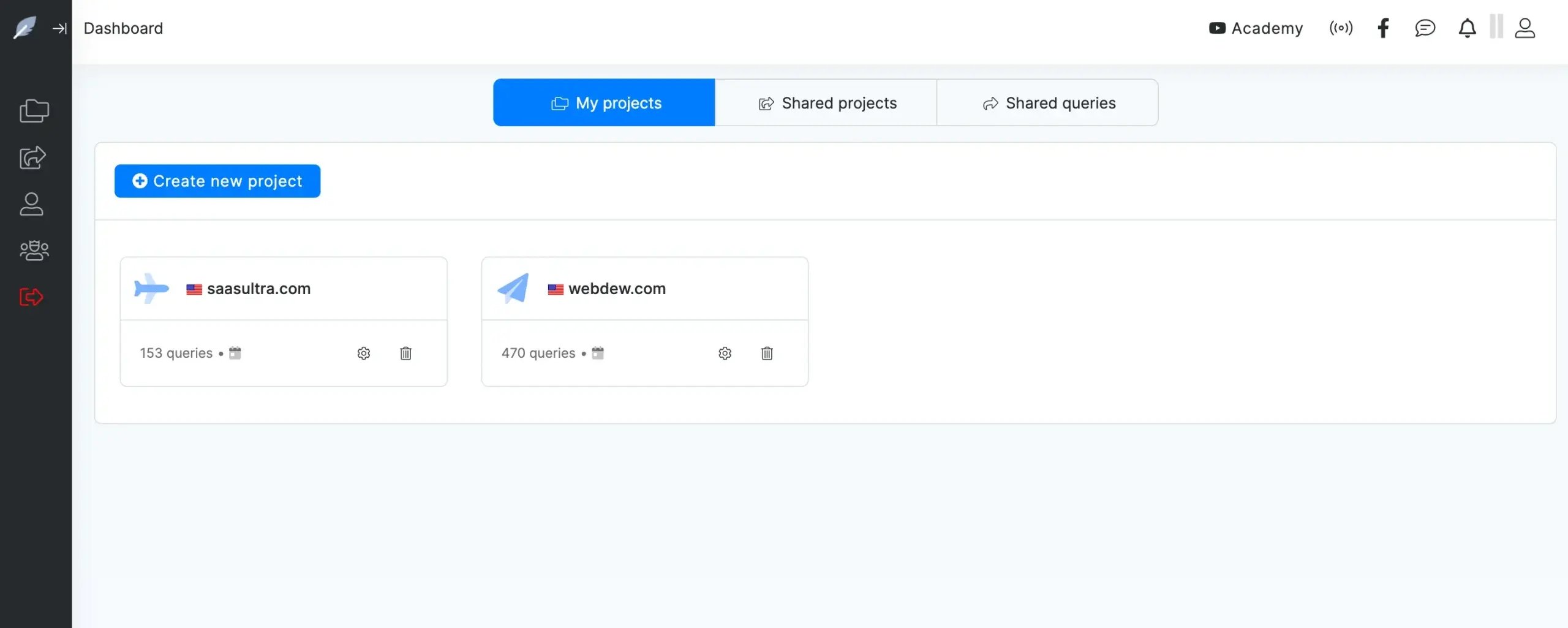 Firstly, NeuronWriter offers an intuitive and user-friendly dashboard, followed by its easy-to-navigate interface. The image below shows its dashboard: