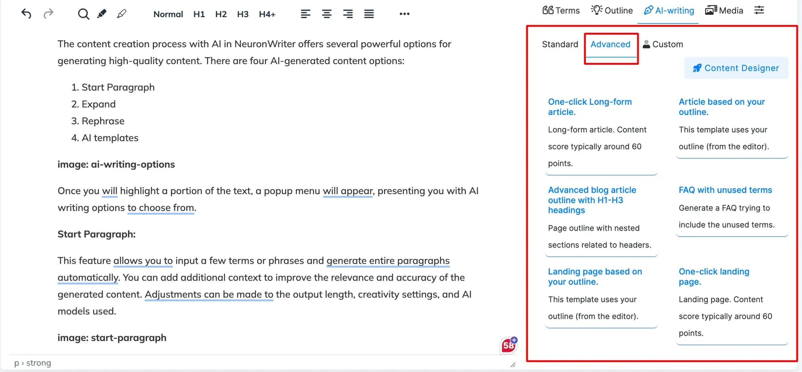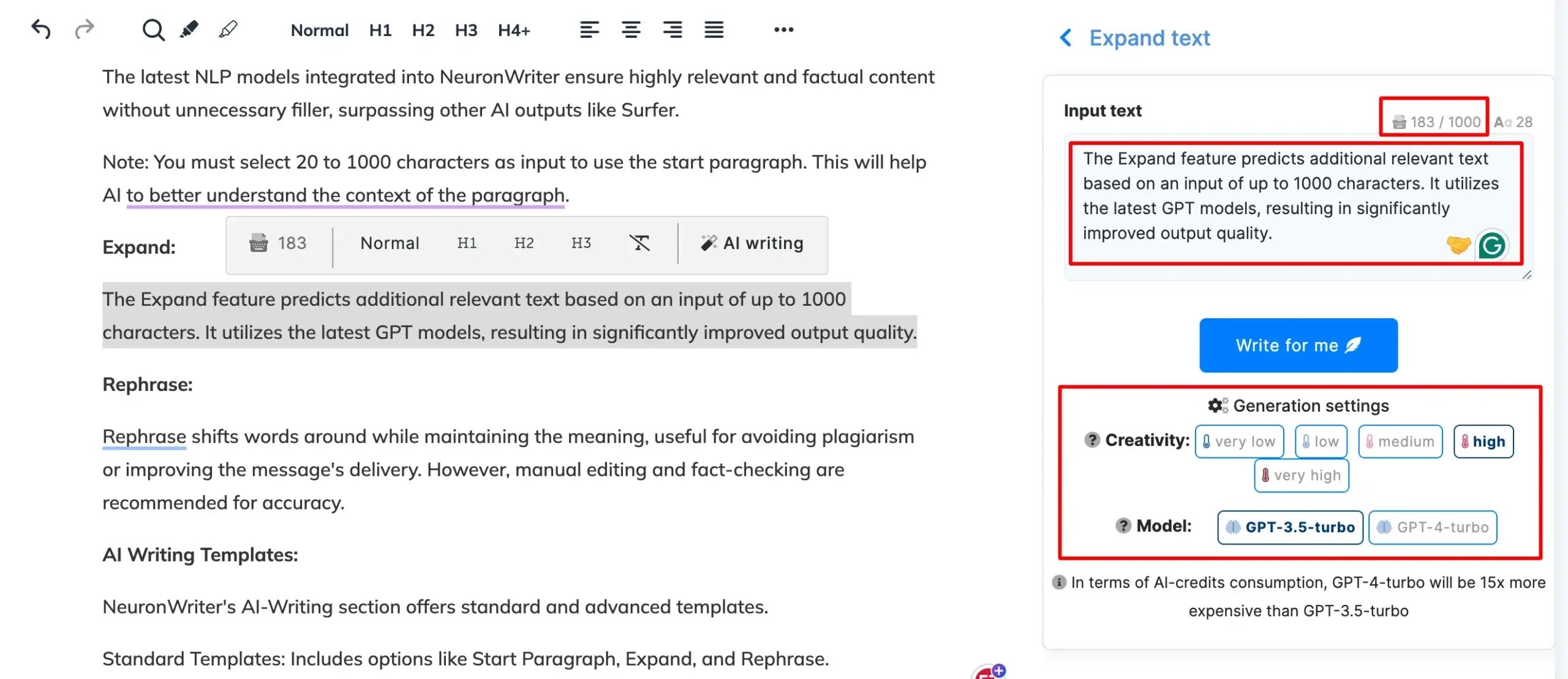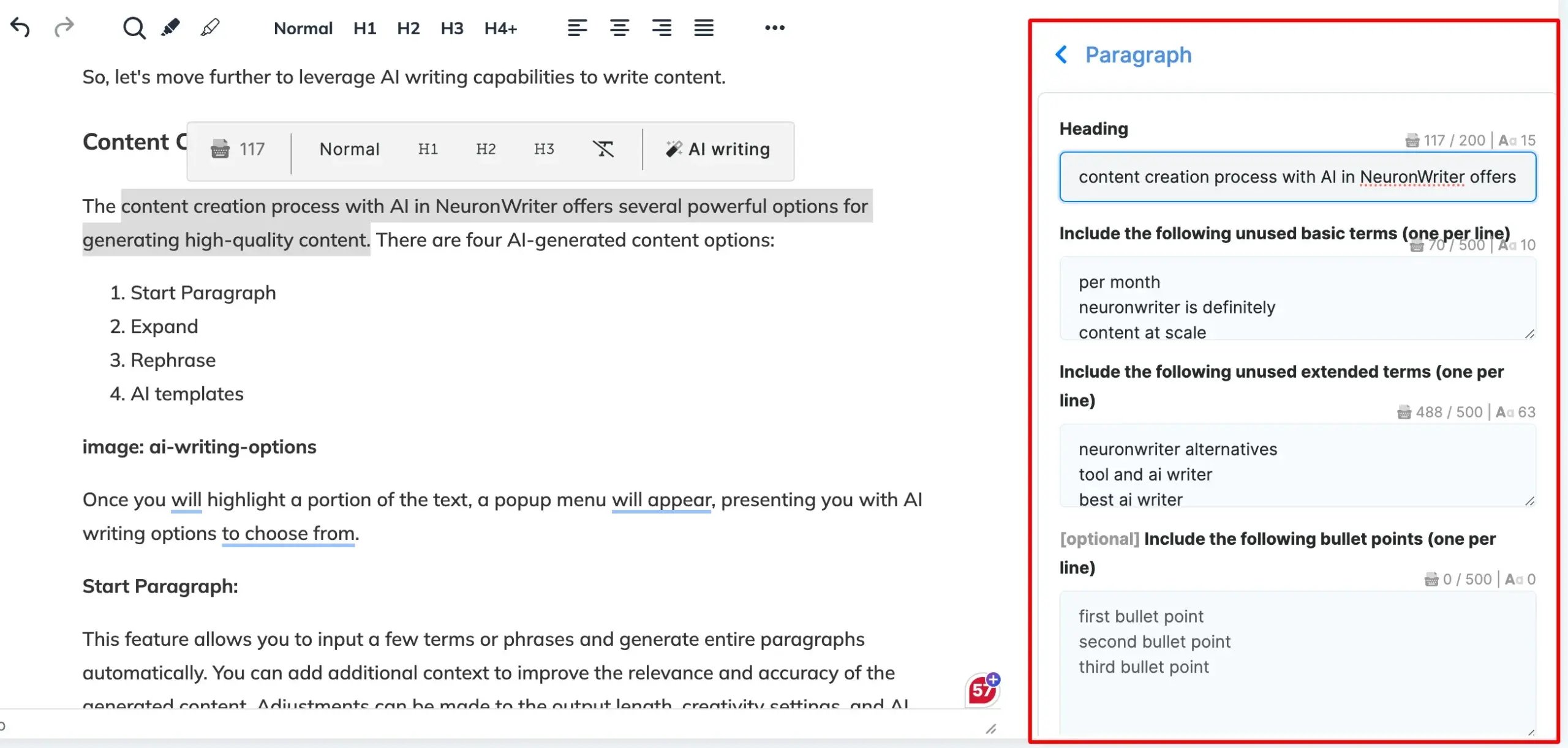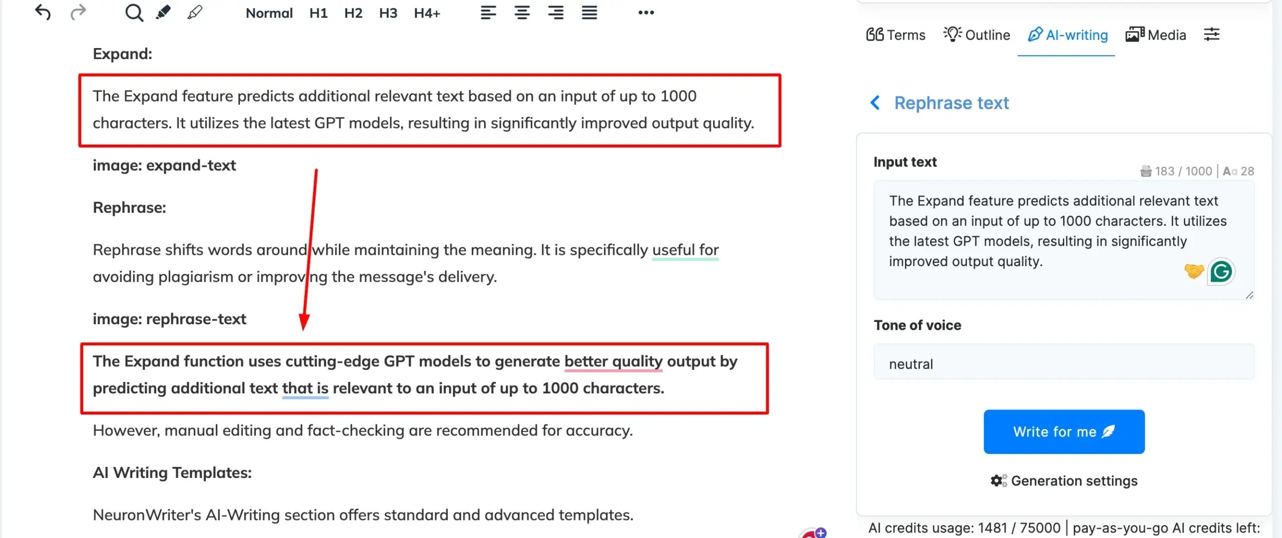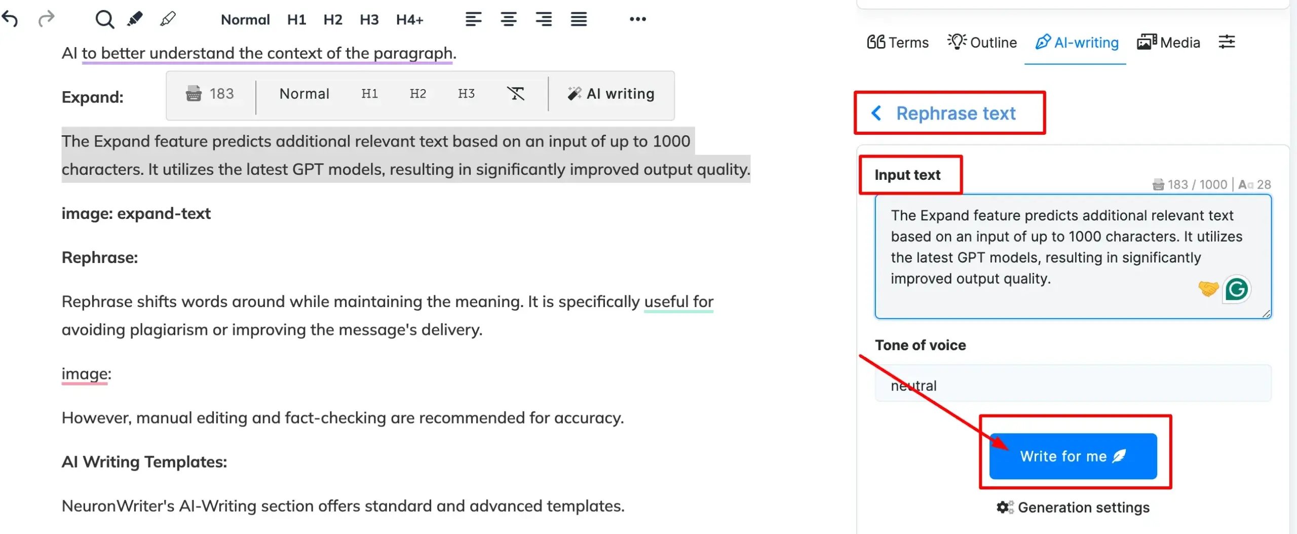NeuronWriter offers several powerful options for generating high-quality content at scale.