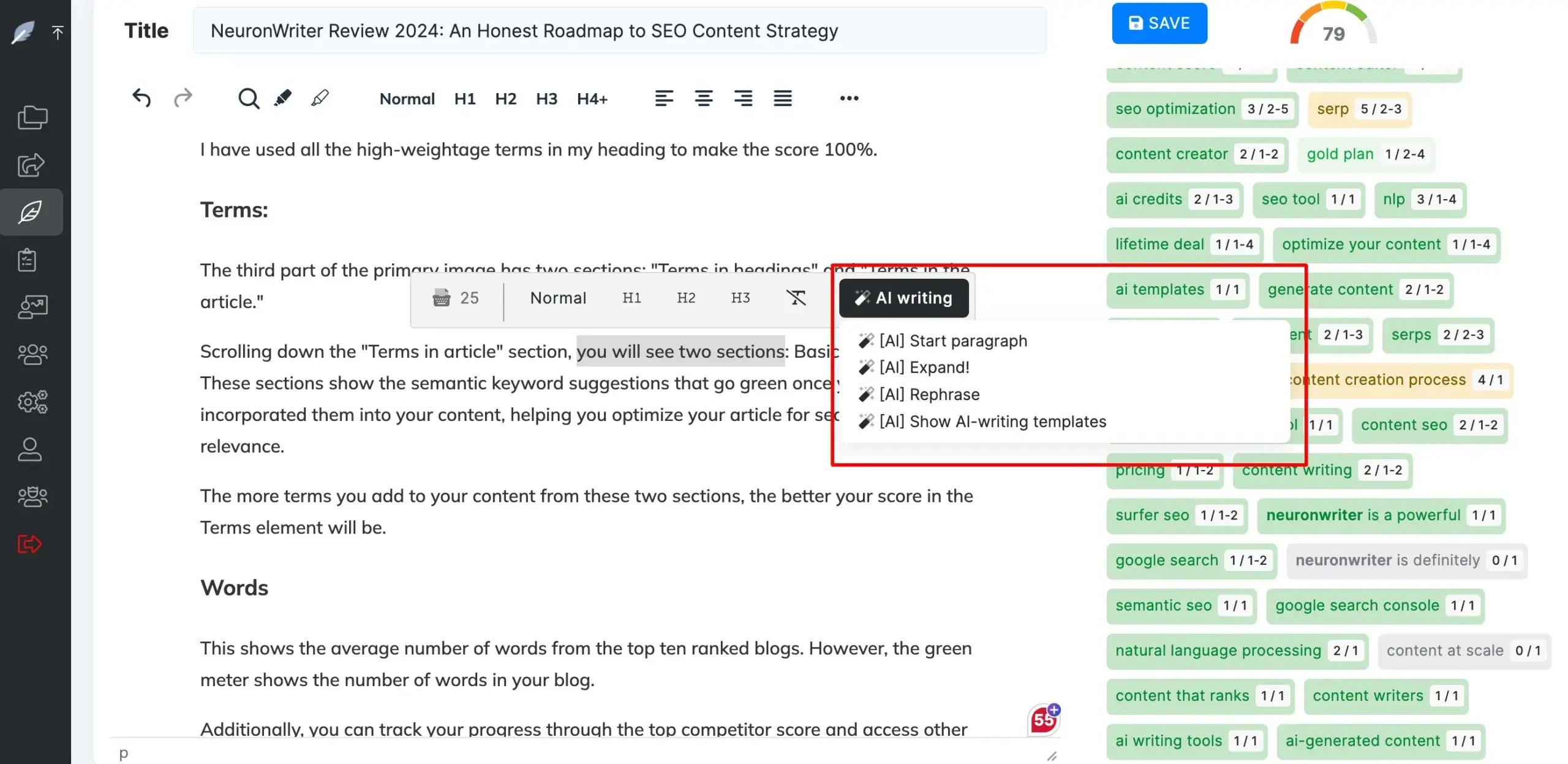 NeuronWriter operates by harnessing the power of artificial intelligence to revolutionize the content creation process, particularly in the context of SEO, making it an indispensable AI writer.