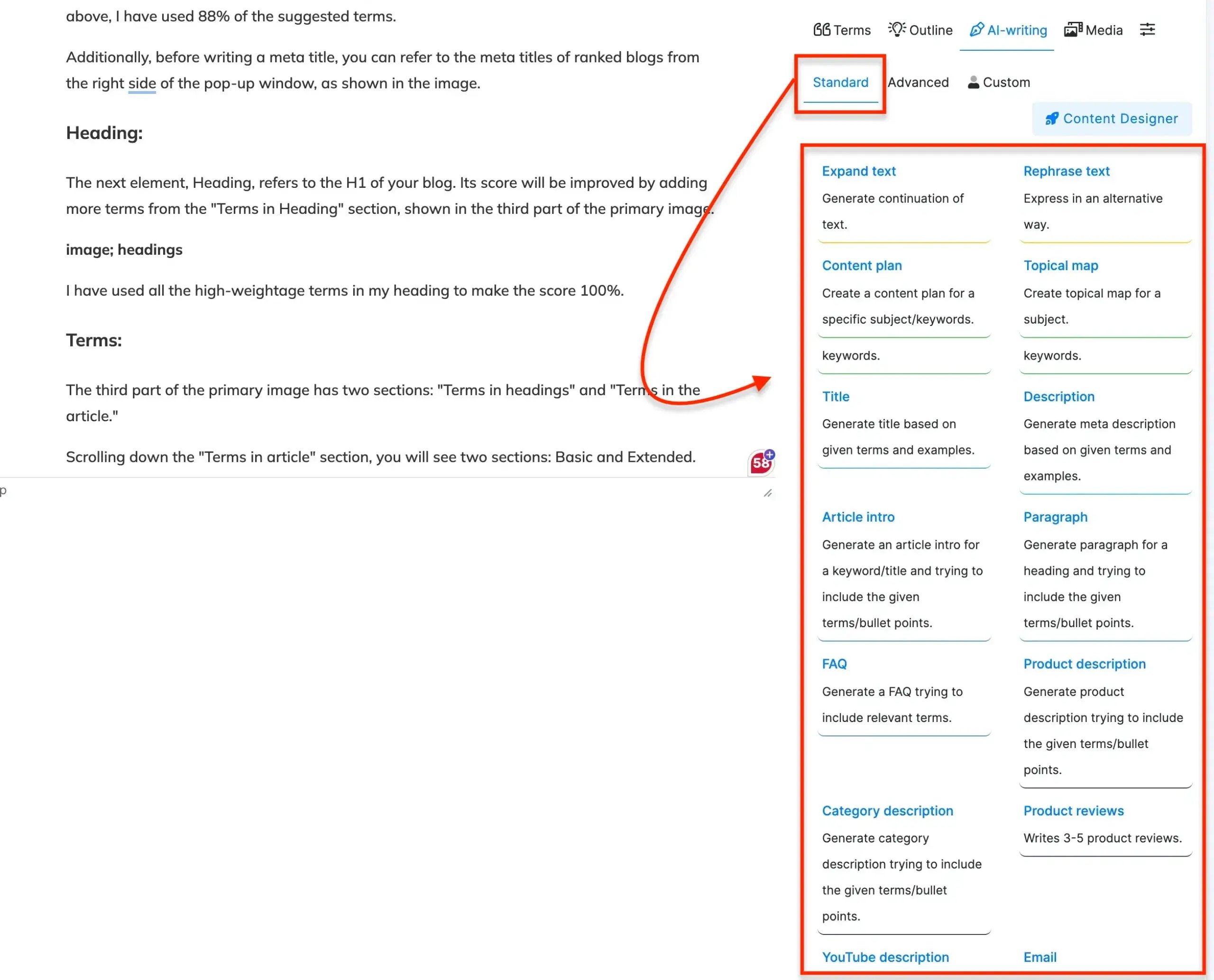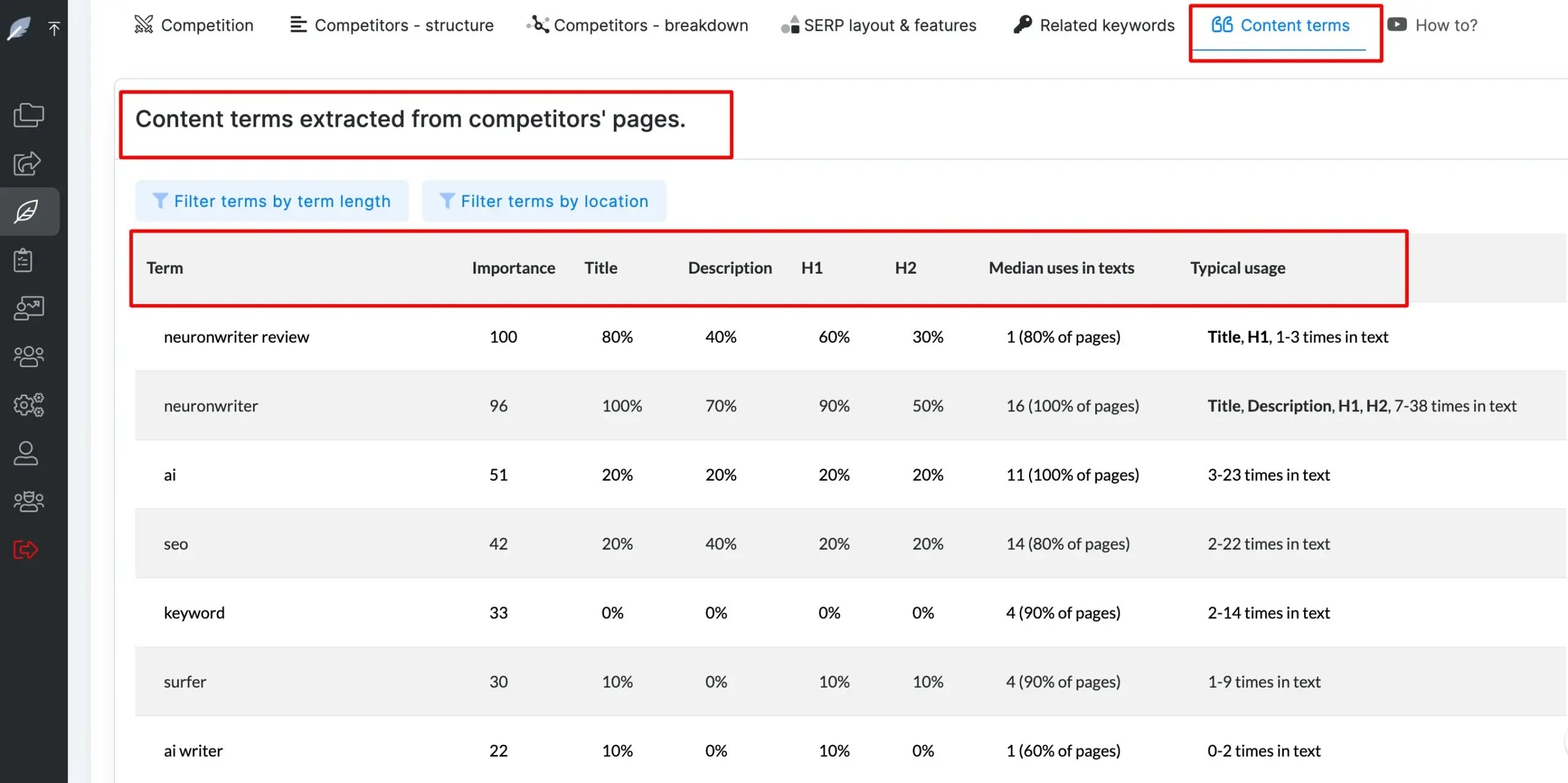 This feature is invaluable and helps you create SEO-friendly content. You can enhance your content quality and visibility by understanding which terms are crucial and how frequently they should appear.