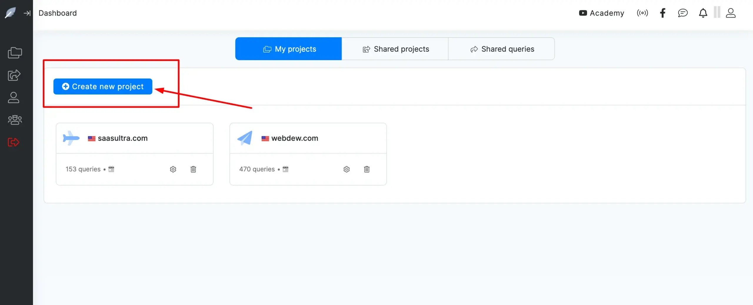 To start with a new project on NeuronWriter, Let’s click on “Create New Project.“