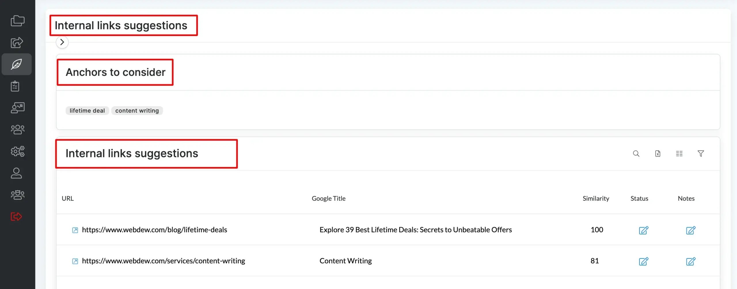 NeuronWriter also gives suggestions about internal links per your prior written blogs.