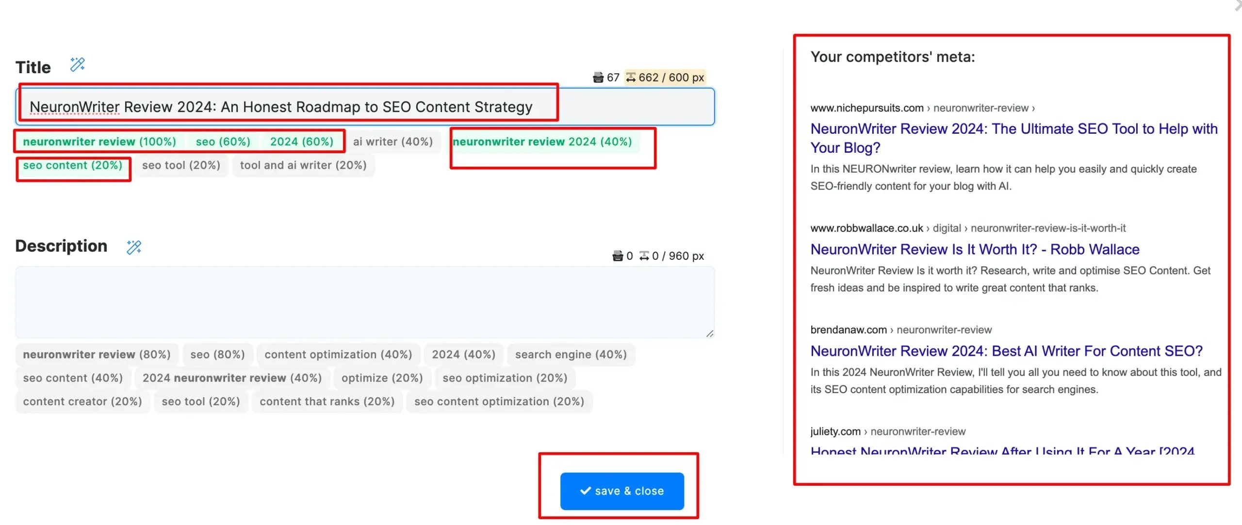 Additionally, before writing a meta title, you can refer to the meta titles of ranked blogs from the right of the popup window, as shown in the image.