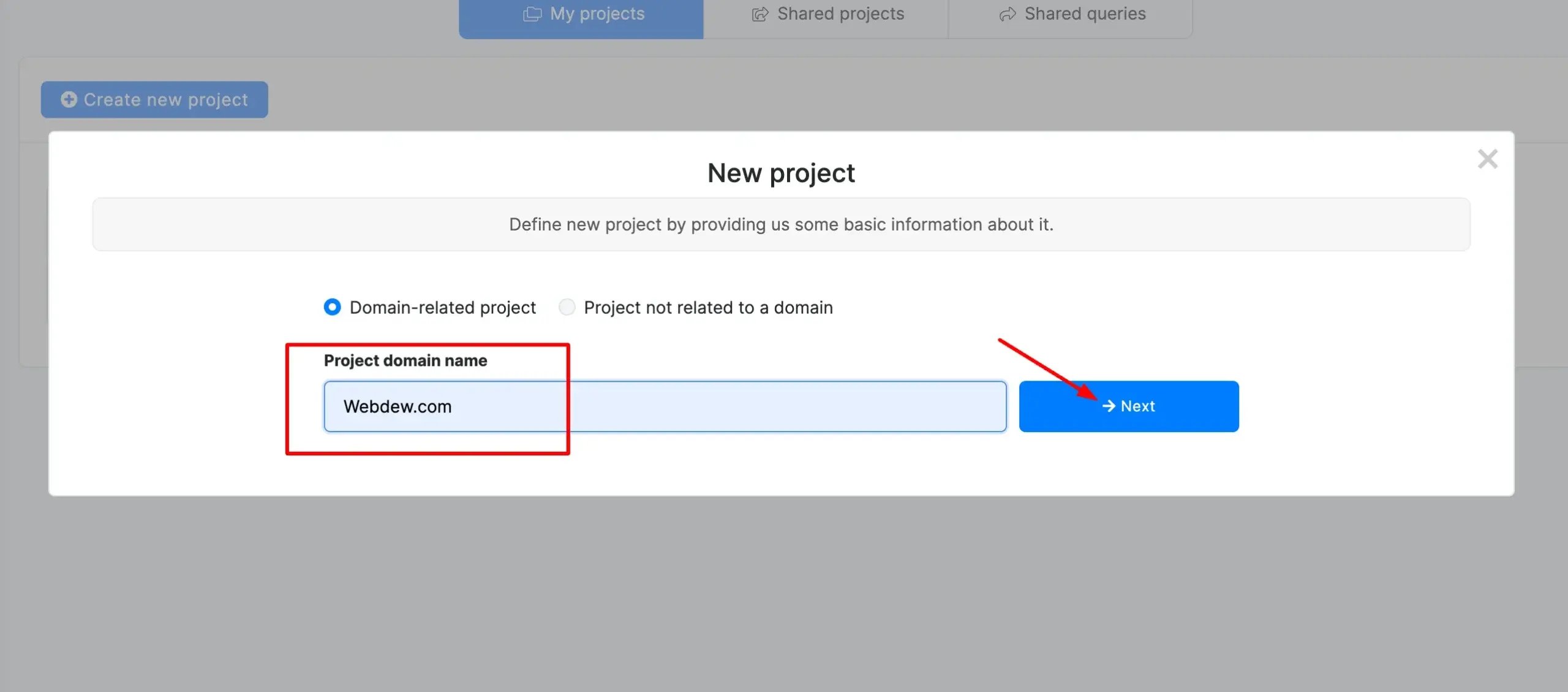 You will see a new window popping out, asking for basic information about your project as the “Project Domain Name.”