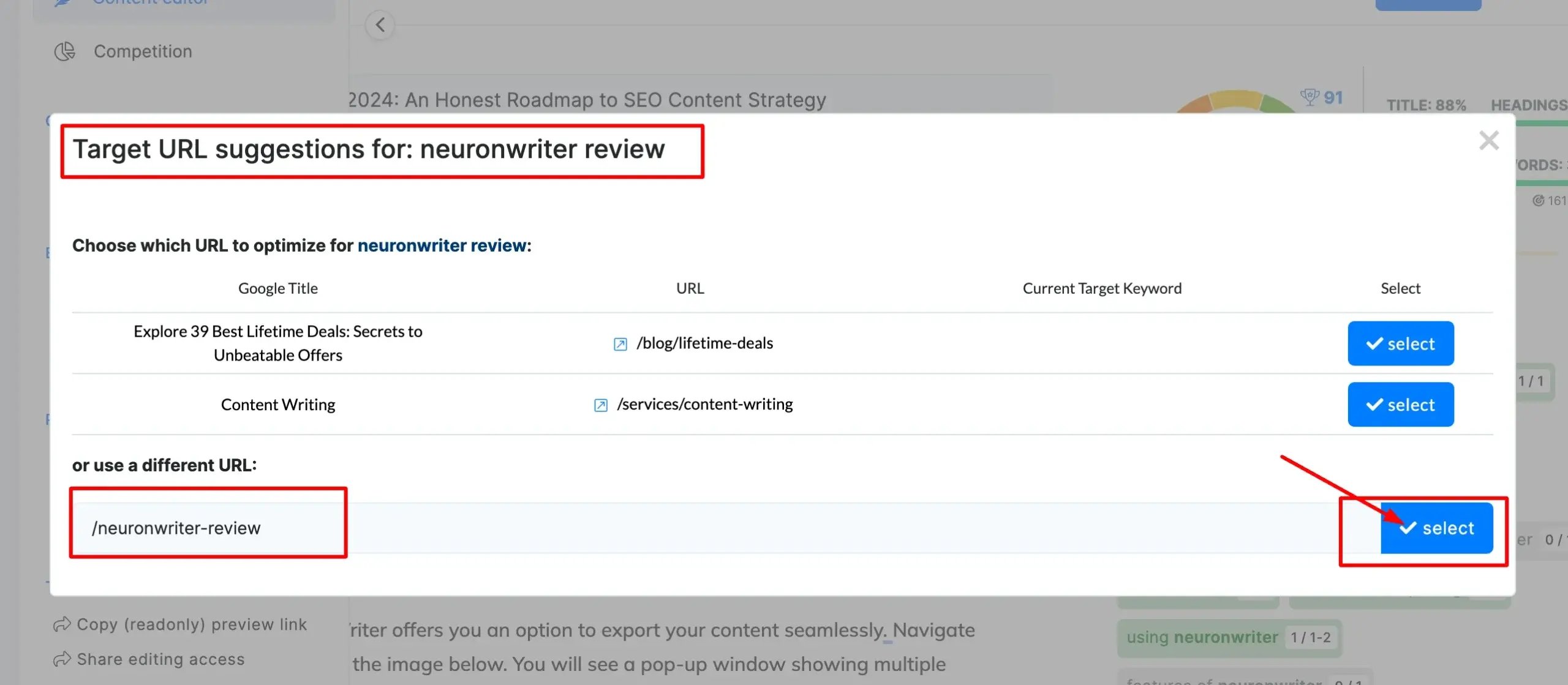 Now is the time to click the title to select your competitors from the NeuronWriter’s list.