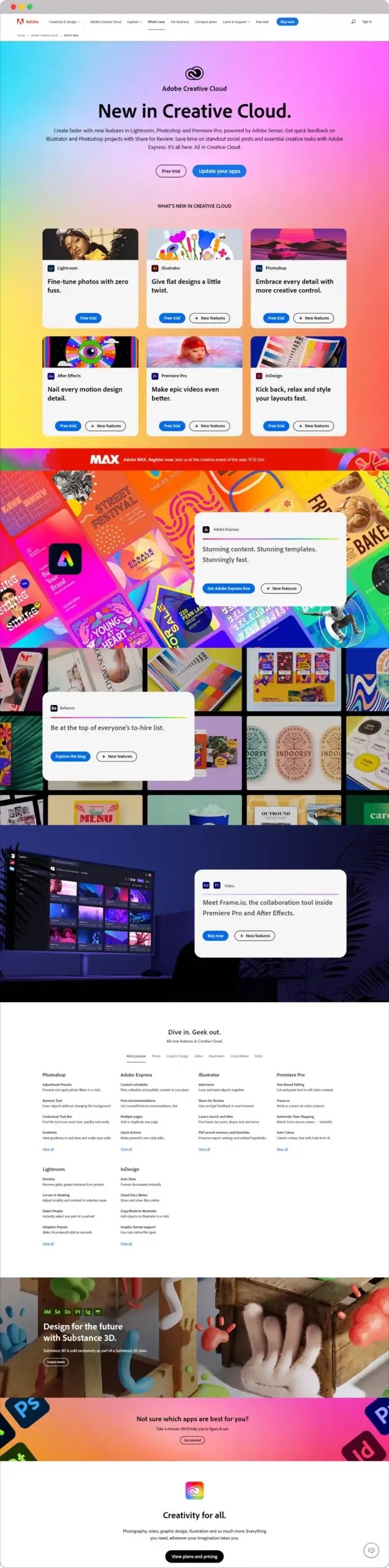 Adobe has a special part where they show new things they added. This helps users easily know about these new things. For their business, this part gets customers interested and makes them think about adding these new things to their subscription.
