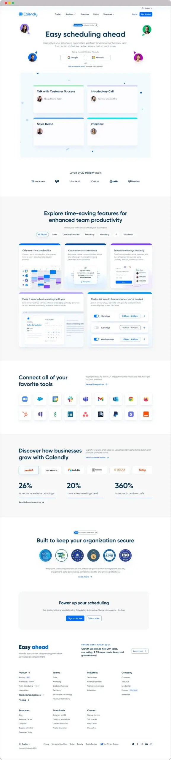 You can set your working hours, sync them with your calendar, and add buffer times between meetings. Calendly sends out automatic reminders so everyone knows when the meeting is coming up.