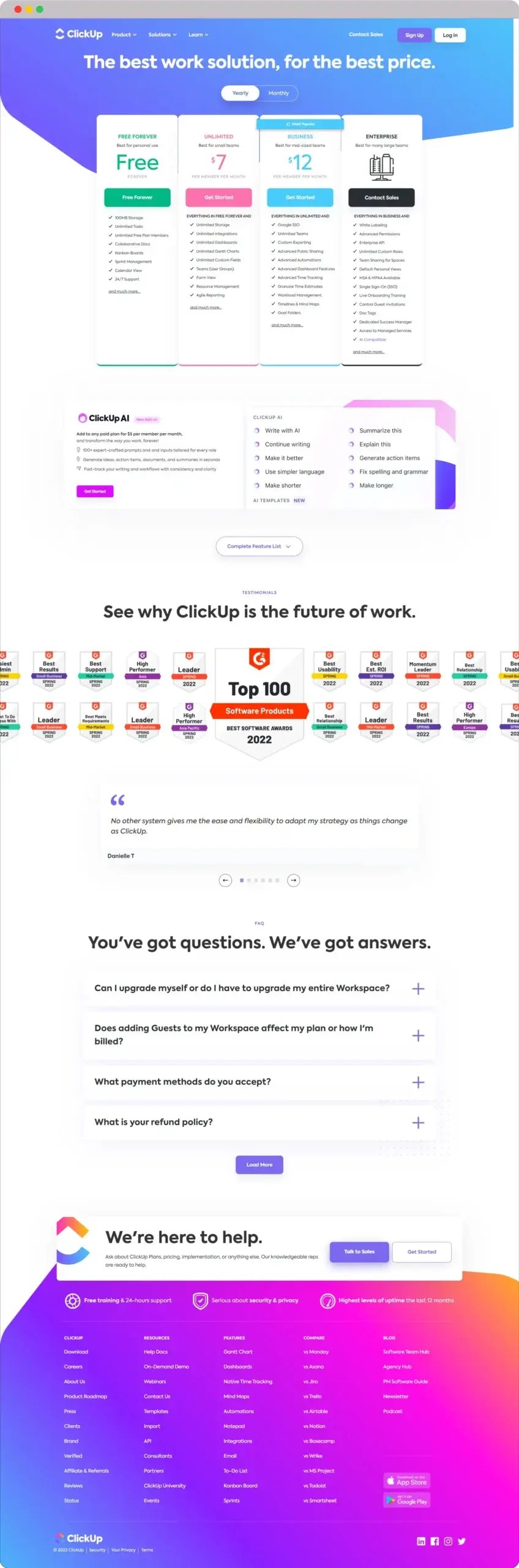 It’s common for many companies to include FAQs, but Slack did something different. Instead of tucking them away at the end, as most companies do, Slack placed them in the middle of the page, right after the pricing plans.