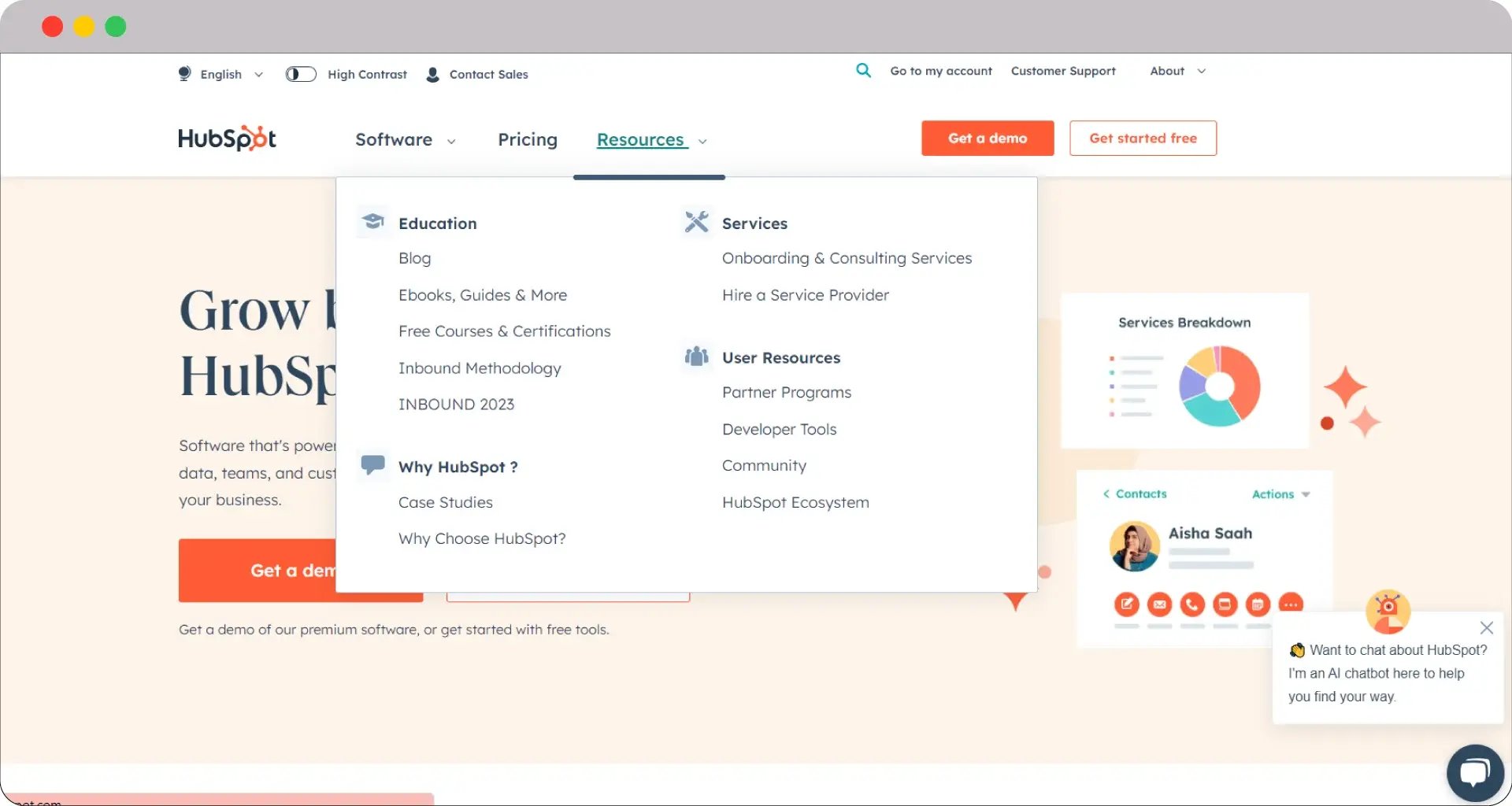 The website opens with a persuasive statement, “Grow better with HubSpot.” This prompts visitors or potential customers to consider that while their business might be doing well, partnering with HubSpot CRM could elevate their success.