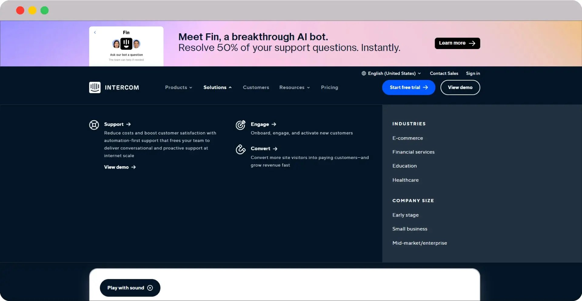 When you hover over the “Solution” menu, you will discover that it offers solutions tailored to specific industry types and company sizes.
