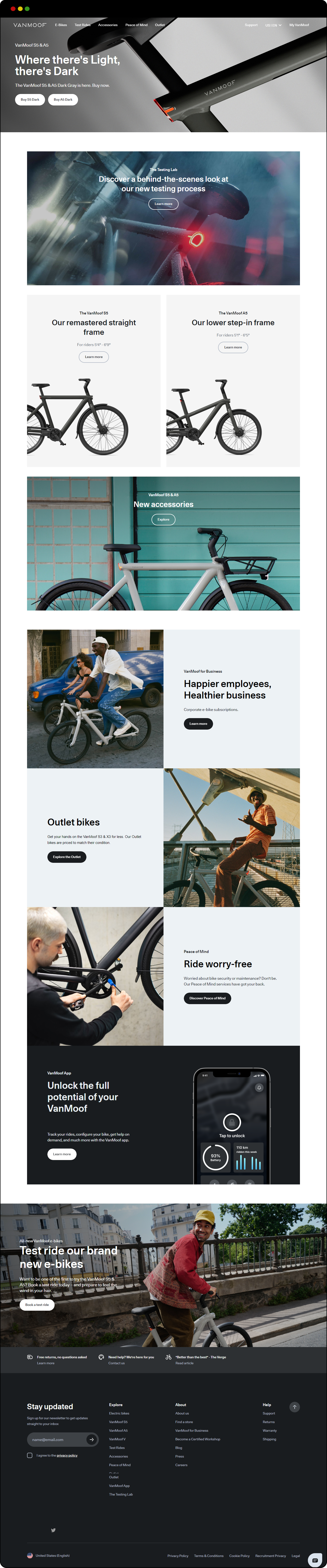 VanMoof is a company that specializes in creating high-quality electric bicycles that are stylish and environmentally friendly. Their sales page is a perfect representation of their brand identity. Let me tell you why: