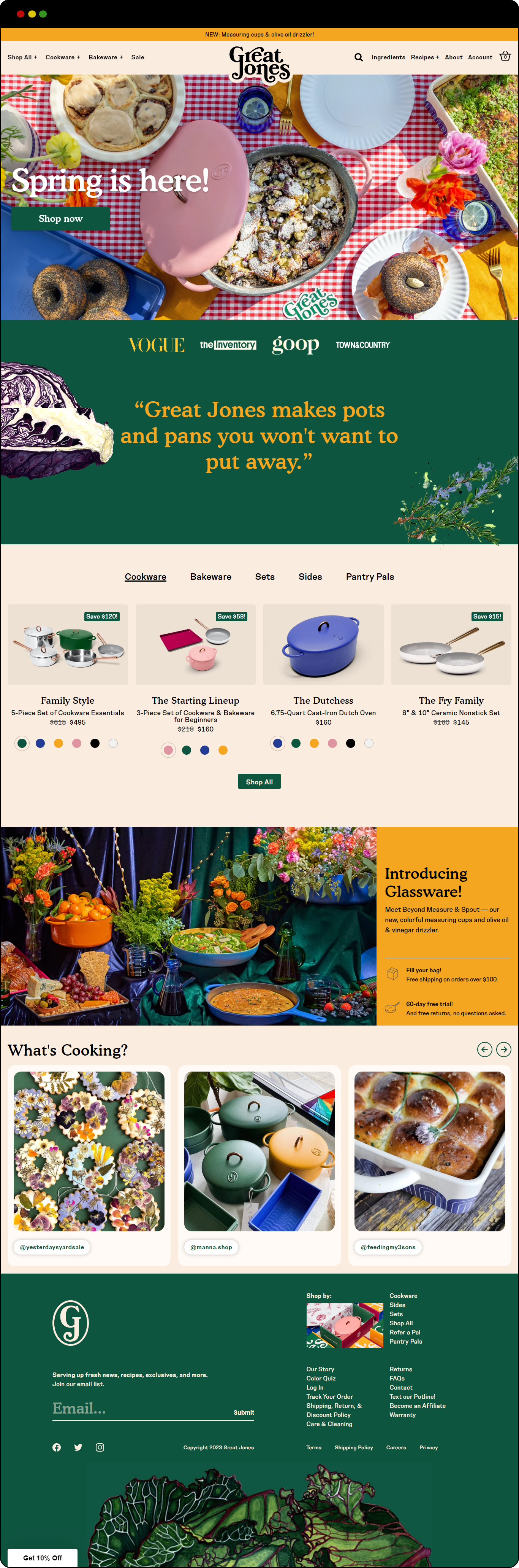 - The page also includes endorsements from well-known chefs and food bloggers. These best practices establish Great Jones as a trusted name in the culinary world.