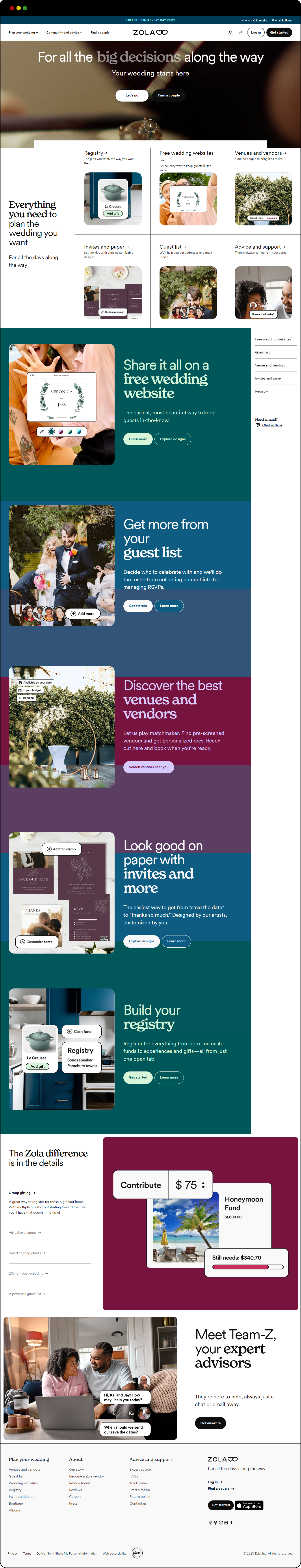 Finally, Zola’s sales page is optimized for conversion. From the simple and user-friendly design to the strategic placement of key elements, every aspect of the page is designed to encourage visitors to sign up and start planning their dream wedding.
