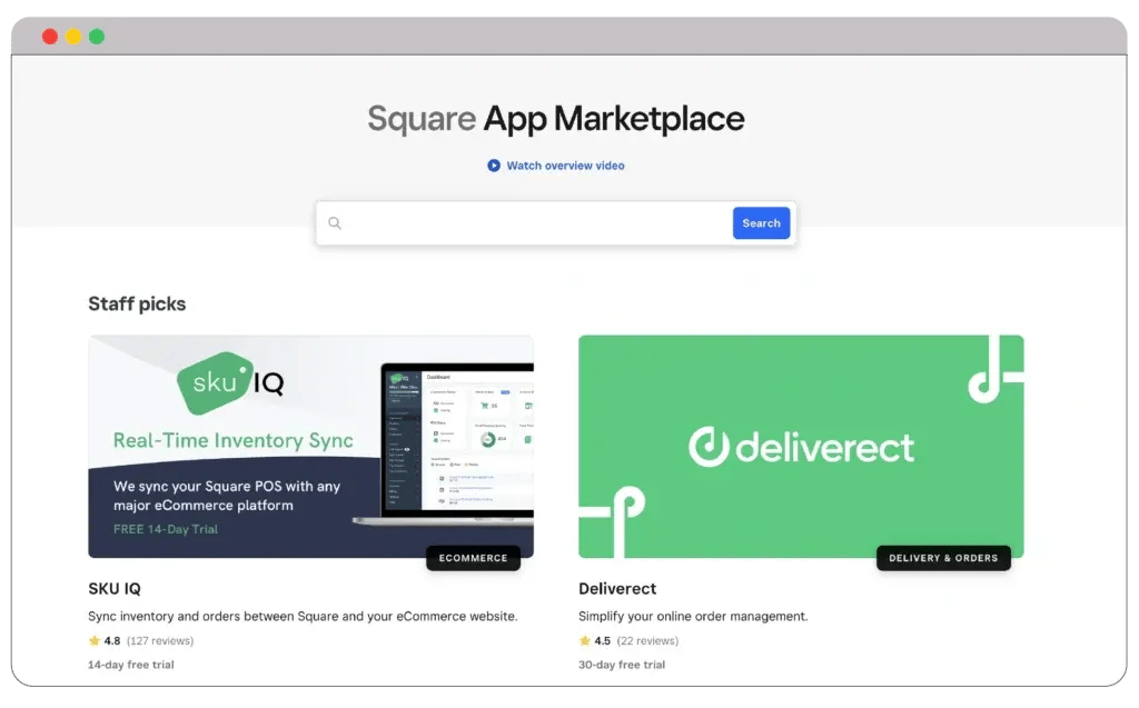 Available apps include paid and free plans; many offer trial periods to test their functionality. Some notable integrations that enhance Square Online’s capabilities include Mailchimp for email marketing, Shopventory for inventory management, WeGlot for multilingual support, and Printful for on-demand product printing and shipping.