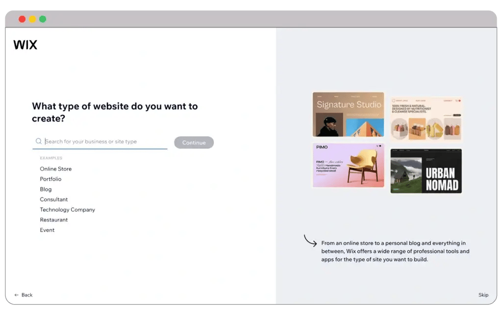 One standout feature of Wix’s setup process is the Wix ADI (Artificial Design Intelligence), which streamlines the initial stages of building your site. When you begin, Wix ADI asks simple questions about your site type (such as online store, portfolio, or blog), business goals, and contact information. If you already have an online presence, it lets you seamlessly import content.